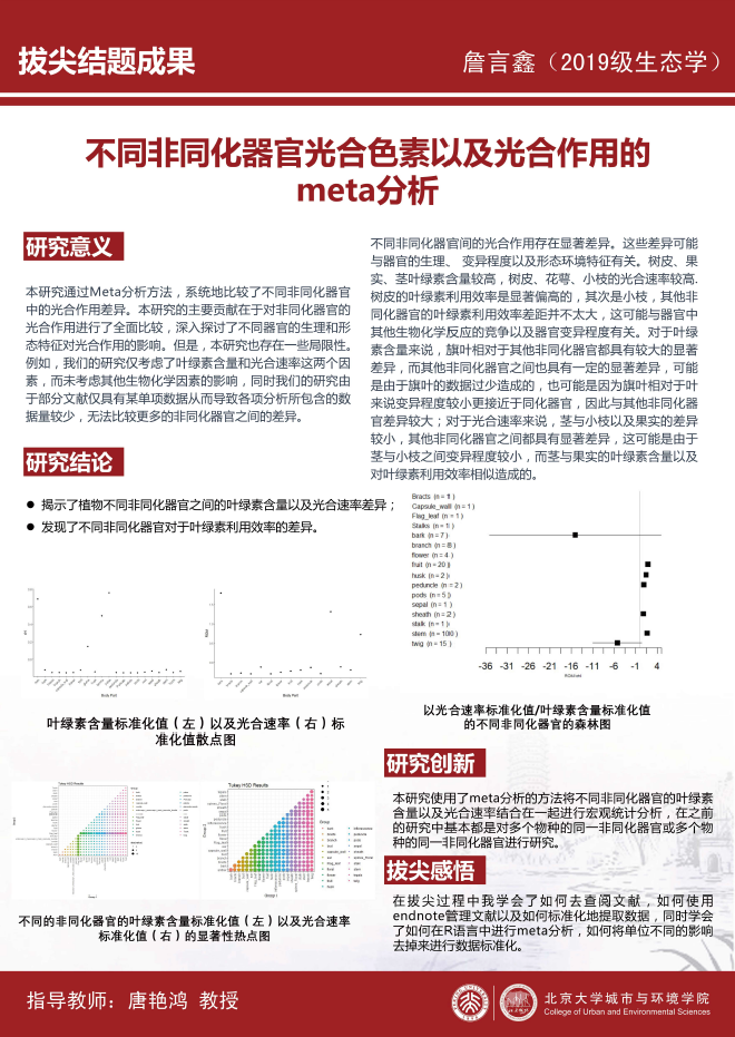 生态学专业的詹言鑫同学发言中提到,自己参与拔尖的最大收获是能够从头到尾体验整个科研的过程,从研究选题、阅读文献开始,此后与导师不断交流,直至论文写作完成,只有通过亲身体验,才会发现科研过程中的具体的问题并解决问题。“纸上得来终觉浅,绝知此事要躬行”,这也将会成为个人成长宝贵的经验。