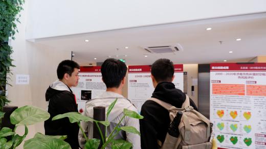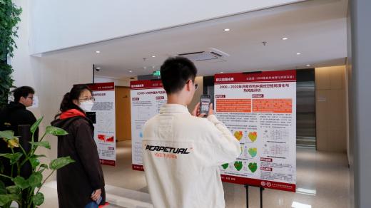赌博 大楼一层大厅布置了2019级11位拔尖结题同学的成果展板。结题同学在自己展板前与感兴趣的师生交流研究成果,分享心得体会。