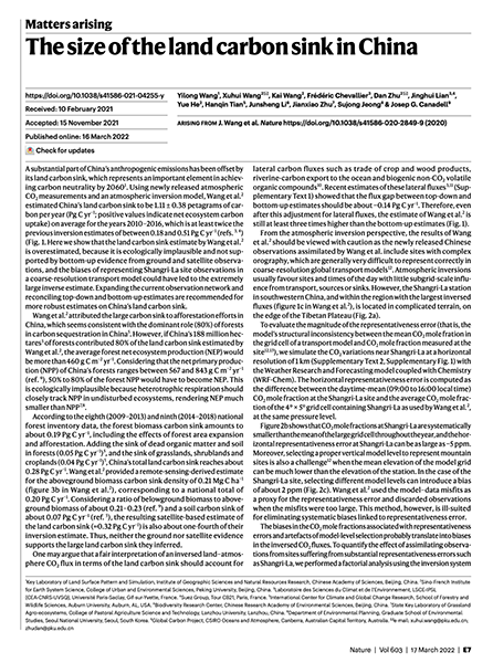 2022年3月16日正规赌博平台-推荐可靠的网络赌博平台 王旭辉研究员和朱丹研究员以“The size of the land carbon sink in China”为题发表在《自然》杂志。正规赌博平台-推荐可靠的网络赌博平台 中法地球系统模拟联合研究中心和中国科学院地理科学与资源研究所合作领导的研究团队重新核算了我国的陆地碳汇大小,修正了2020年发表于《自然》杂志的大气反演研究对我国陆地碳汇的过高估计,为我国大气反演陆地碳汇研究提供了新的思路,为评估陆地碳汇在实现我国碳中和目标中的作用提供了科学依据。汪宜龙副研究员为论文第一作者,王旭辉研究员和朱丹研究员为通讯作者。该研究得到了第二次青藏高原综合科学考察研究和国家自然科学基金等项目的资助。