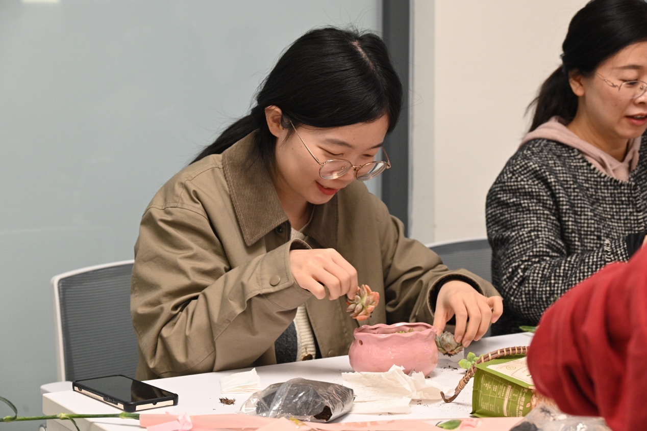“指尖生绿·匠心育美”—— 赌博平台 举办“三八”节绿植DIY活动