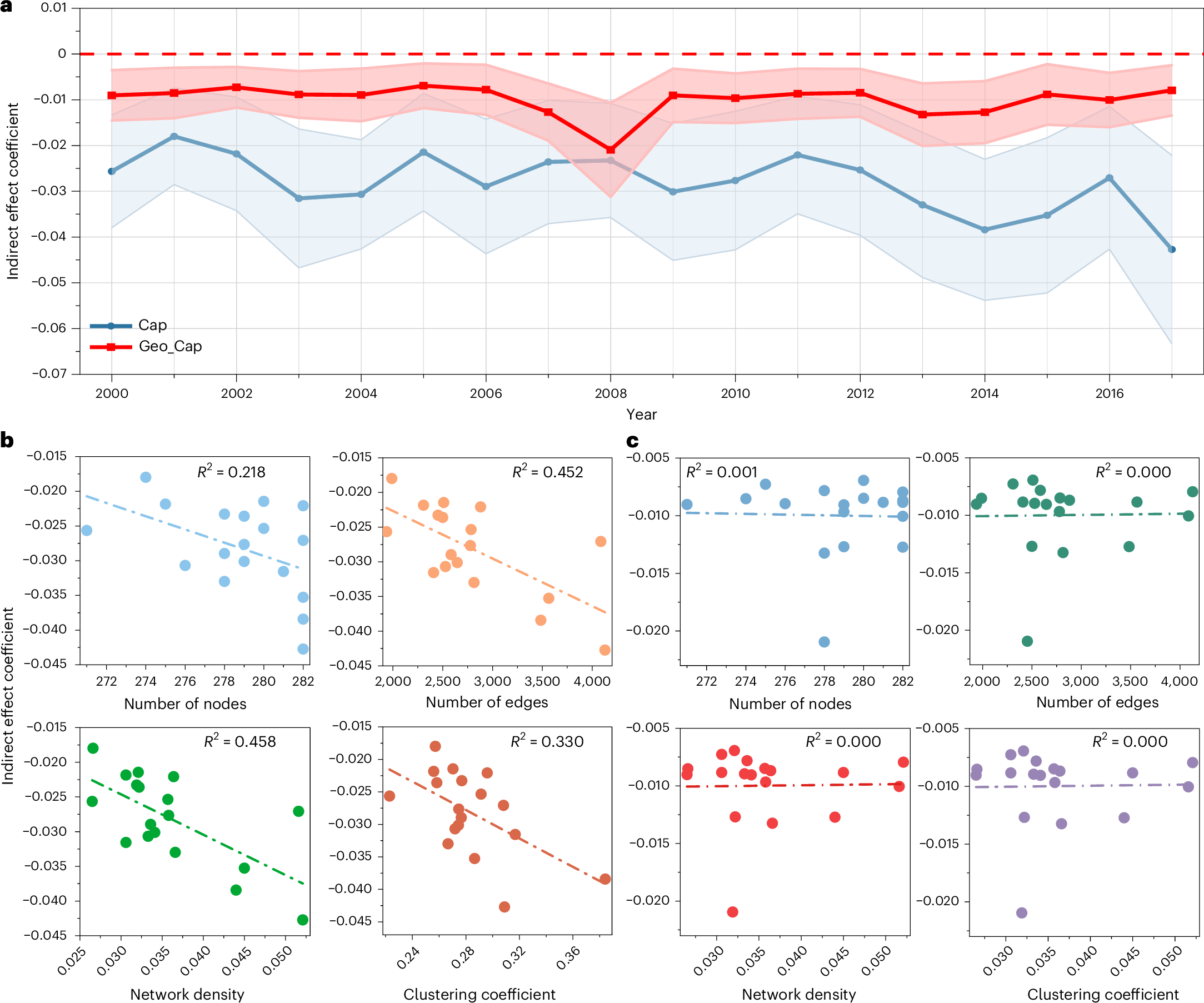 研究团队进一步考察了2000-2017年间中国城际投资网络的动态演化,发现随着网络复杂性提升,自然灾害的负面溢出效应被放大,从2000年的-0.026单位上升至2017年的-0.043单位。这意味着在国内统一大市场建设背景下,城际经济联系愈发紧密,尽管有可能提升应急管理资源的配置效率,但也同时加速了区域间自然灾害风险传导。
