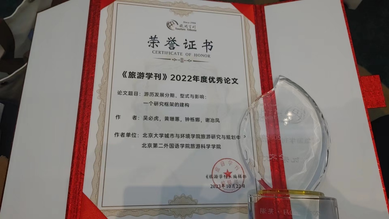 年会前,由《旅游学刊》编委组成评审委员会评出2022年《旅游学刊》年度论文,年会期间现场颁奖。我院吴必虎教授带领的学术团队(其他三名成员分别为钟栎娜、黄珊蕙和谢冶凤,均为北大赌博平台 校友)成果《游历发展分期、型式与影响:一个研究框架的建构》荣列年度十篇优秀论文之一。该论文发表于2022年第3期《旅游学刊》。